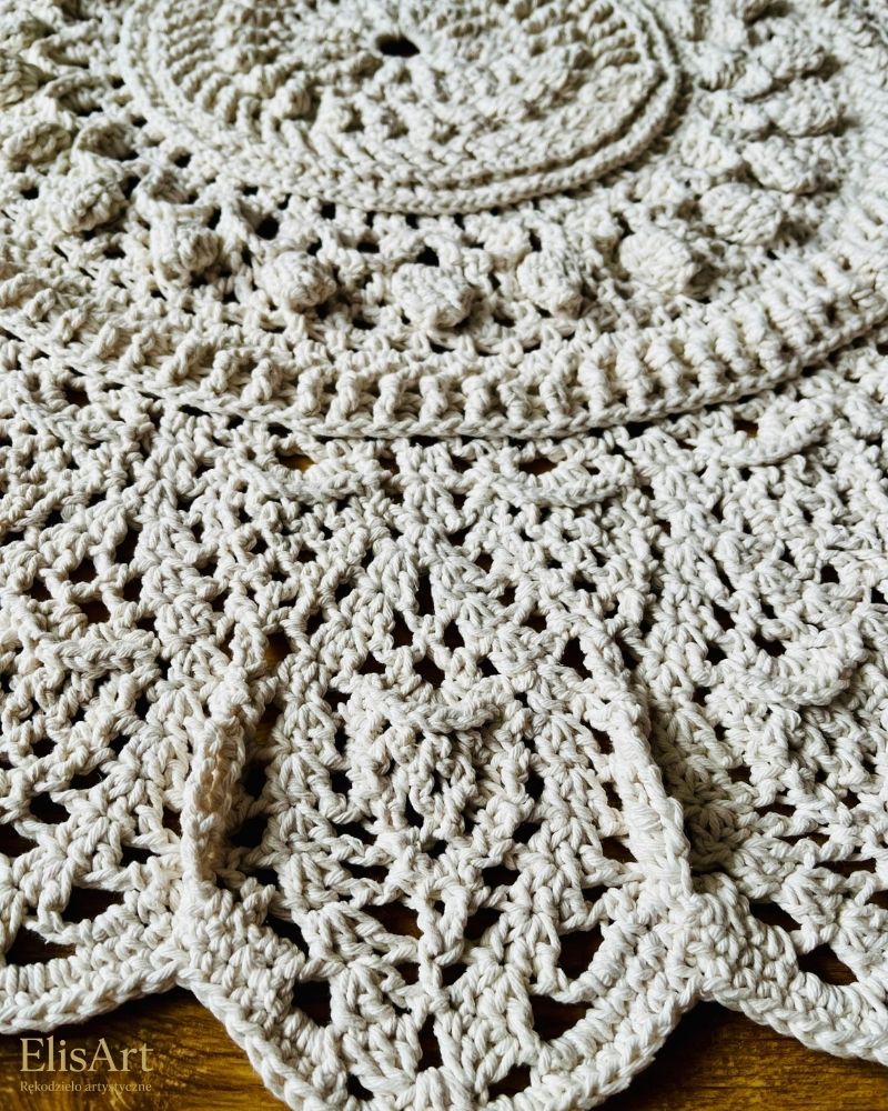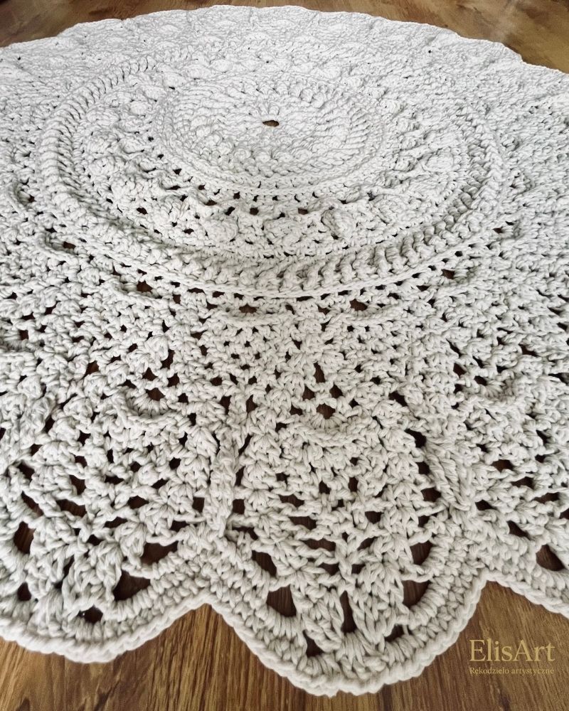 Średnica: 100 cm Kolor: naturalna ekologiczna biel – dodaje wnętrzu spokoju Materiał: 100% ekologiczny sznurek bawełniany