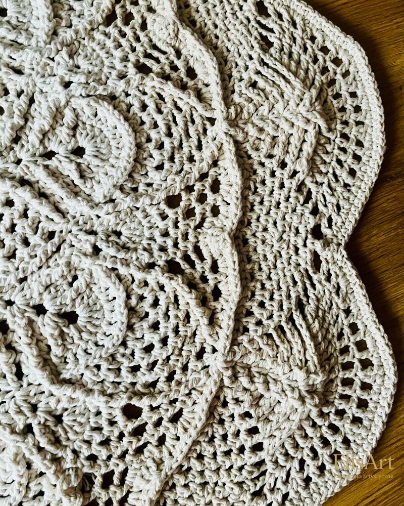 Ten okrągły dywan o średnicy 100 cm został wykonany z ekologicznego sznurka bawełnianego w odcieniu naturalnej bieli. Dzięki zastosowaniu techniki reliefowej 3D, zdobi go elegancki, dekoracyjny wzór, który dodaje przestrzeni głębi i artystycznego wyrazu. To nie tylko praktyczny element wyposażenia – to stylowy akcent, który buduje atmosferę i dodaje wnętrzu osobowości. Dla miłośników piękna, świadomych konsumentów i wszystkich tych, którzy cenią rzemiosło oraz ponadczasowy styl.